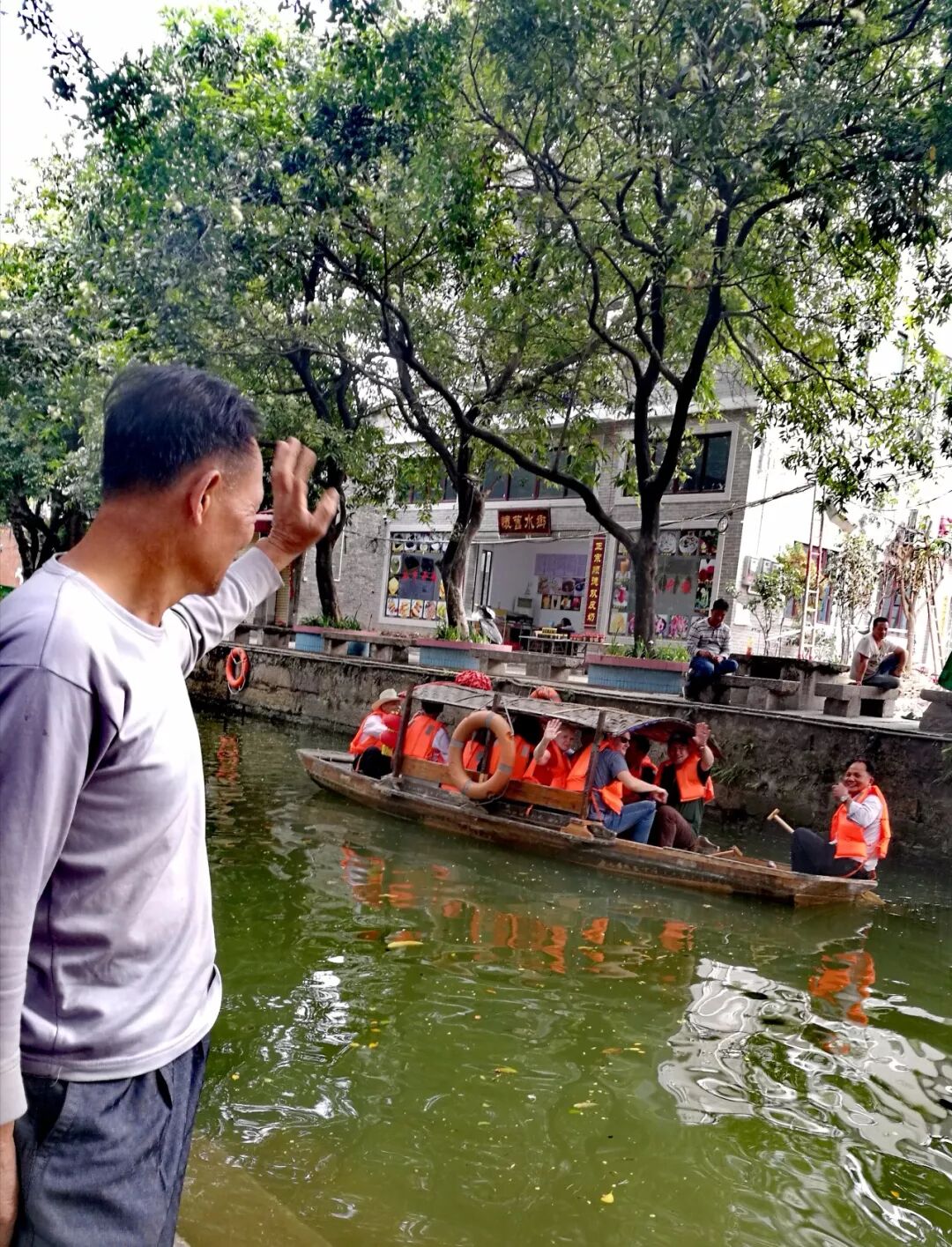 午宴后来到杏坛逢简水乡,并乘坐木舟,感受杏坛逢简岭南古村格局,欣赏古屋错落,古树遍布,石板古道纵横的水乡特色。