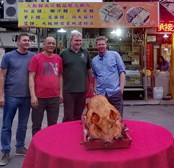 澳美厨师团一行近距离观看了均安蒸猪的全过程, 几位澳美大厨说既兴奋又激动,这样整只猪以蒸的技法来烹饪制作,他还是第一次看到,叹为观止!